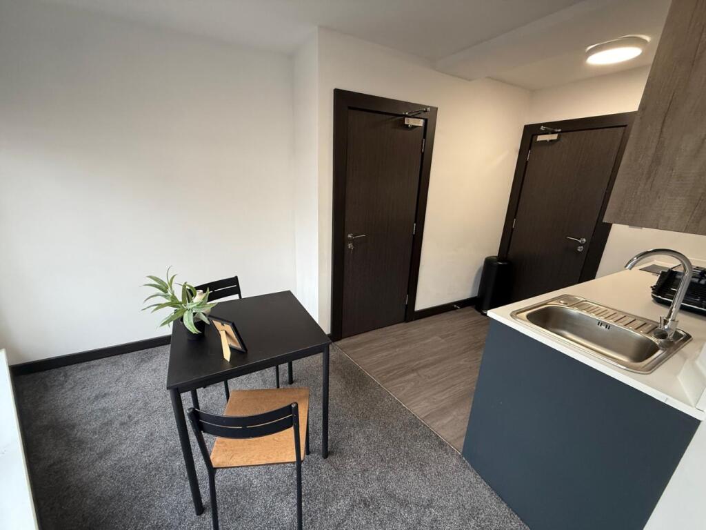 A spacious and well-presented studio apartment available to let in the heart of Derby City Centre, located on Babington Lane