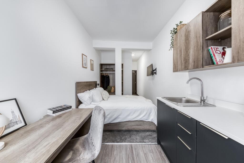A stylish, fully furnished studio apartment available to let in the heart of Derby City Centre on Babington Lane
